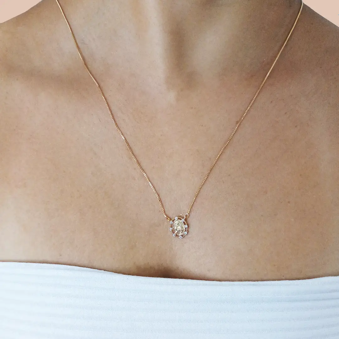 Banhado a ouro 18k, o escapulário combina beleza e resistência em uma única peça, oferecendo um brilho intenso e sofisticado que dura por muito tempo. Seu design atemporal com toque moderno é perfeito para compor looks com estilo, sem abrir mão da espiritualidade.
