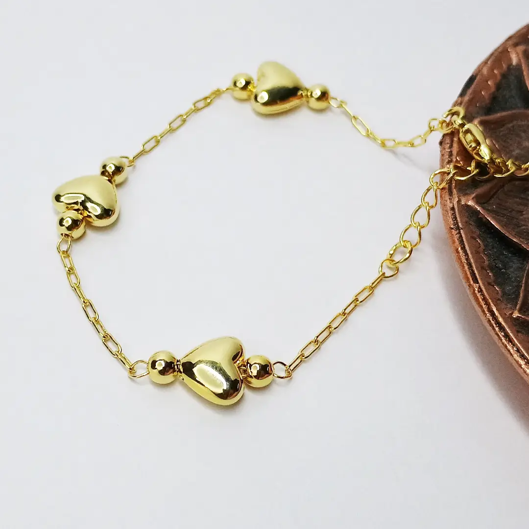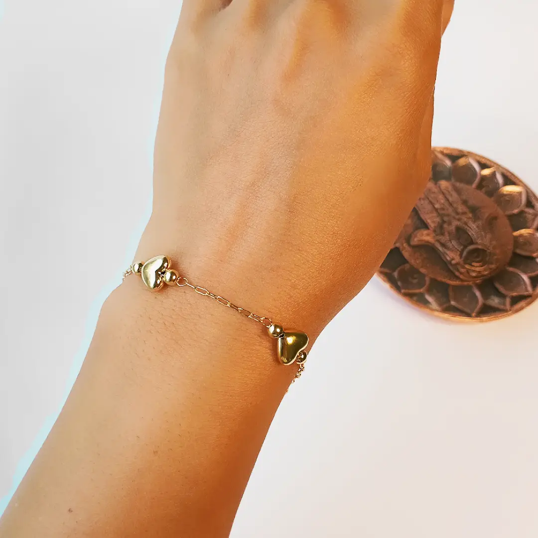 A Pulseira Coração – Grazi é a escolha perfeita para quem busca um acessório delicado e sofisticado. Seu design minimalista combina corações lisos e brilhantes intercalados com pequenas esferas, criando um visual elegante e atemporal. Banhada a ouro 18K, essa semijoia garante durabilidade e um brilho incrível que realça qualquer look.