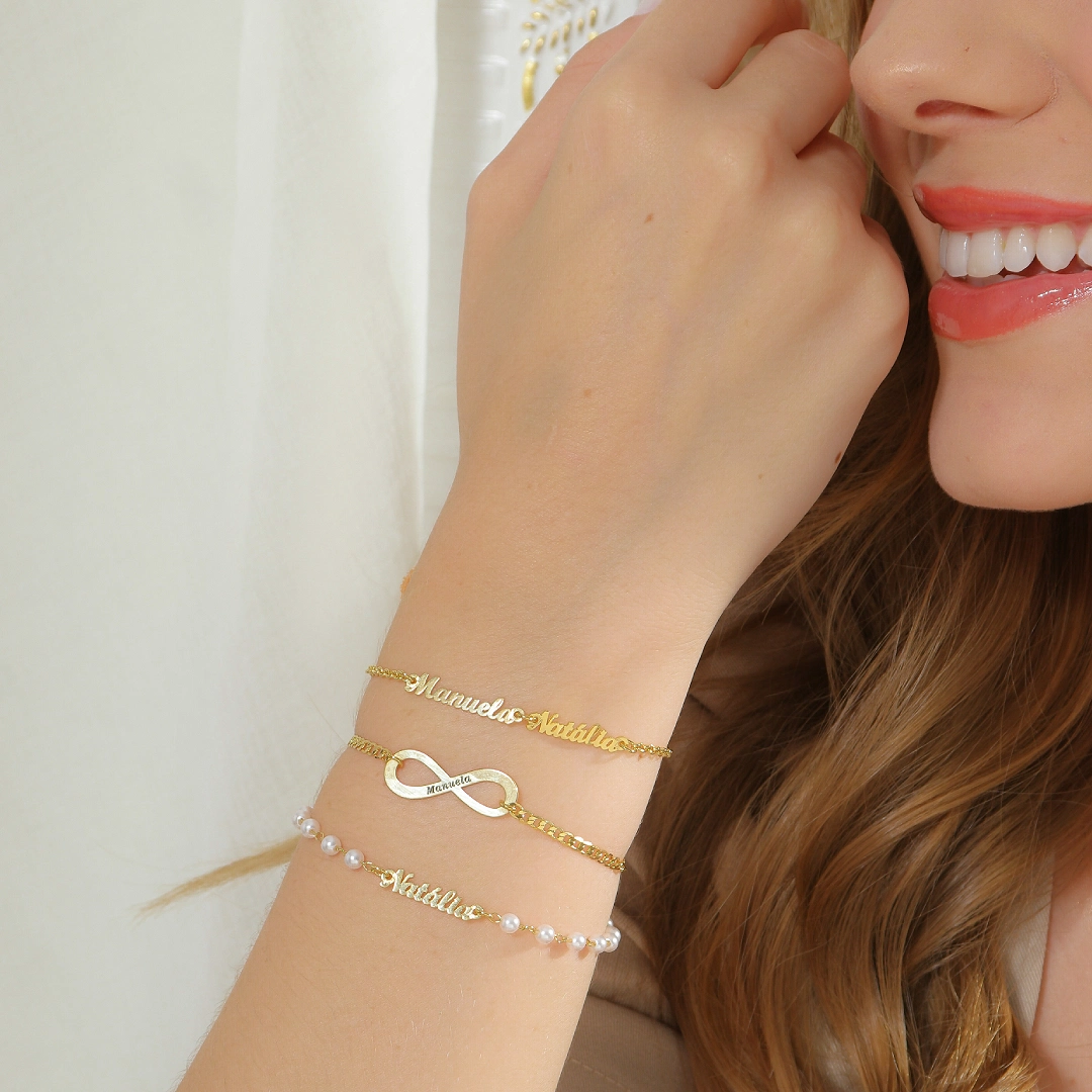 Encante-se com a delicadeza da Pulseira de Pérolas Personalizada. Cada pérola, cuidadosamente selecionada, reflete elegância, pureza e sofisticação, enquanto o nome gravado torna essa joia única e cheia de significado.